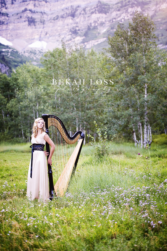 This girl is adorable. She plays the harp (very well, I might add) and she was/is obsessed with Harry Potter, so we did a series that made her look like a character on a movie poster that she can hang up in her dorm room. Cute, huh?